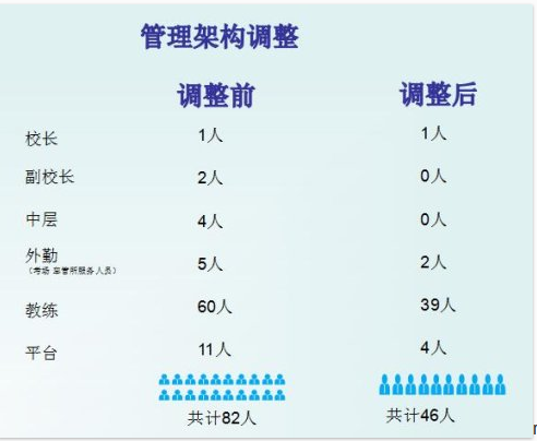 在驾校组织机构的统领下,将人力资源作如下调整: