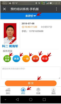 2.网上评价功能。学员每次练完车后,强制对教练教学进行评价。如果学员感到不满意,学员随时可以更换或投诉。